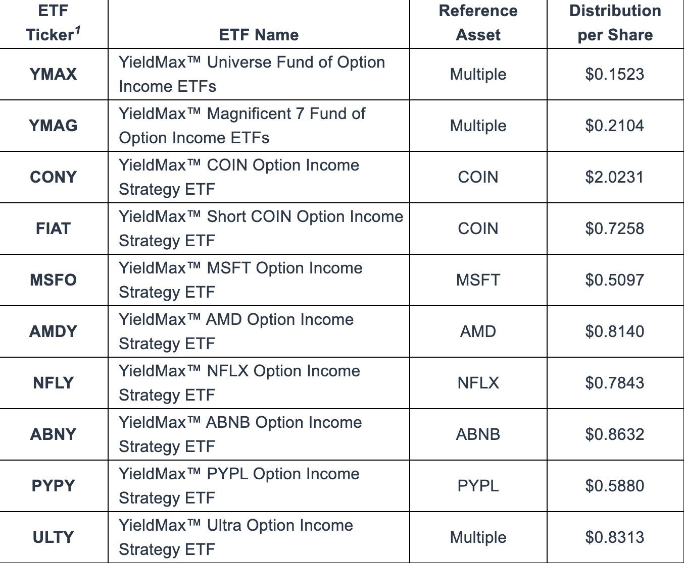 GROUP A ETF에는 CONY, FIAT, MSFO, AMDY, NFLY, ABNY, PYPY, ULTY가 있습니다.